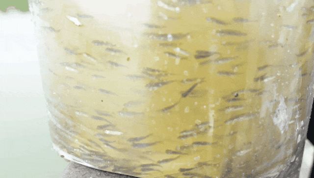 在放流現(xiàn)場(chǎng),工作人員們小心翼翼地將預(yù)先使用氧氣袋分裝好的鱖魚、鳙魚、白鰱、草魚等魚苗提至水邊,隨后緩緩倒入水中,一尾尾魚苗順著水流歡快地游入清江中。
