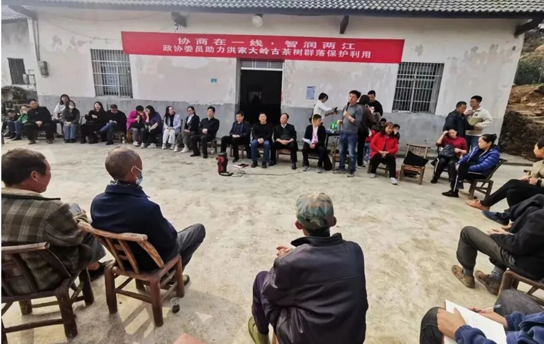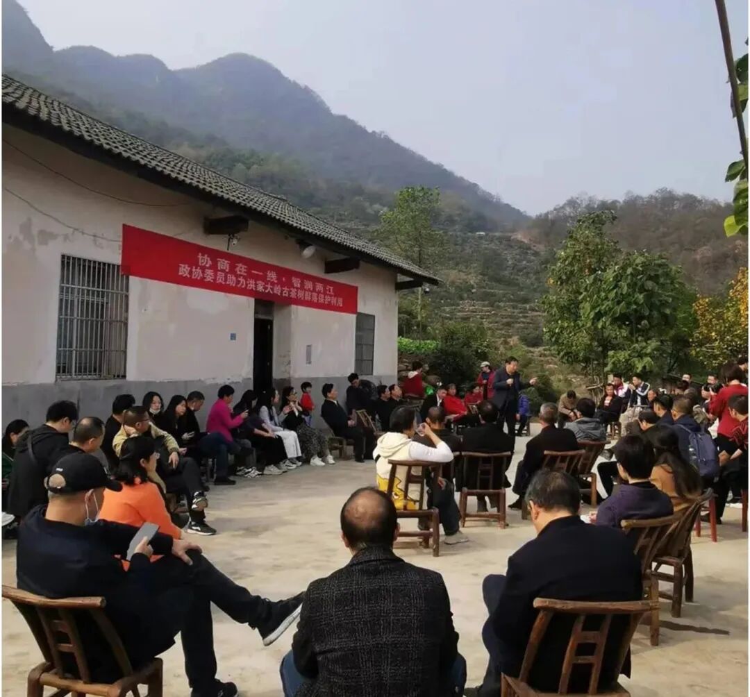 2022年11月5日,在松木坪鎮(zhèn)茶元寺村召開的屋場會上,宜昌市、宜都市政協(xié)委員、市民盟盟員、茶葉專家、村民代表、松木坪鎮(zhèn)第一林長及市自然資源、農(nóng)業(yè)農(nóng)村、文化旅游等部門負(fù)責(zé)人齊聚,共同謀劃洪家大嶺古茶樹群保護(hù)和利用。
