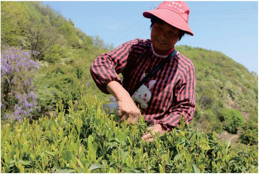▲茶農(nóng)正在采摘洪山茶