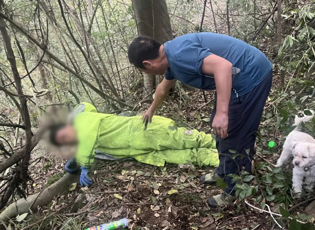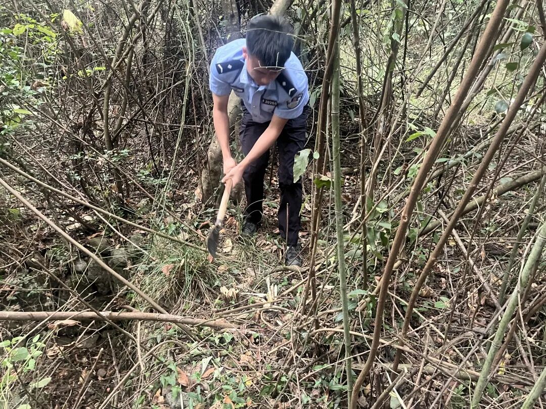 深山之中,沒有現(xiàn)成的道路可走,四周布滿了荊棘和灌木叢,無法準(zhǔn)確地找到受傷者的具體位置。民輔警和醫(yī)護(hù)人員只能在村民的指引下,地毯式地徒步尋找該男子的蹤跡。