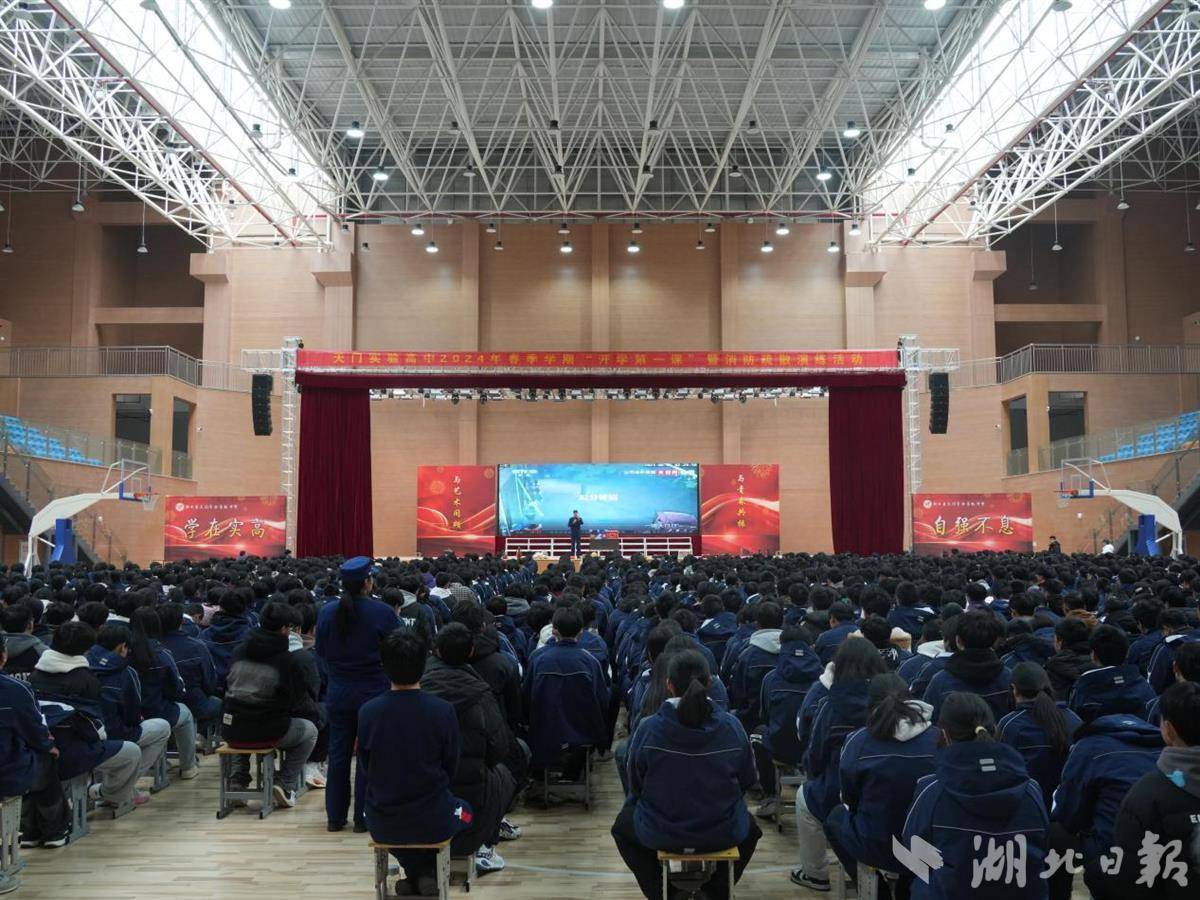 消防員在天門實(shí)驗(yàn)高級(jí)中學(xué)組織全校3000余名師生開展“開學(xué)第一課”活動(dòng)。通訊員李逸攝