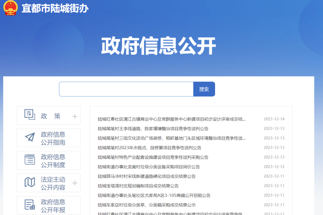 宜都市政府信息公開網(wǎng)陸城街辦政府采購信息公開頁面