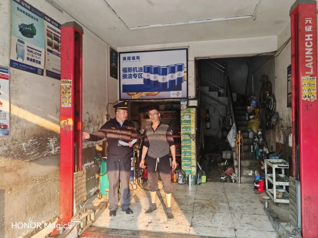 ▲11月8日,執(zhí)法人員到鑫辰汽配汽修廠開展日常檢查。