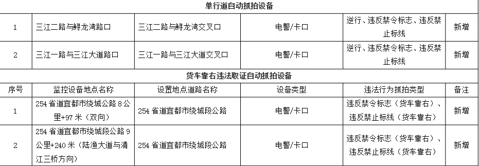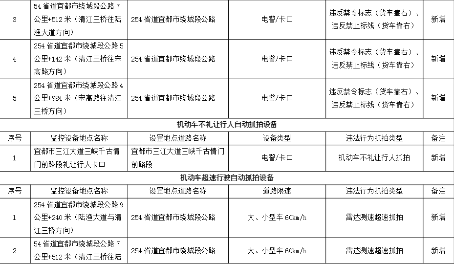 宜都市2024年新增固定式交通技術(shù)監(jiān)控設(shè)備設(shè)置地點公告(第二期)