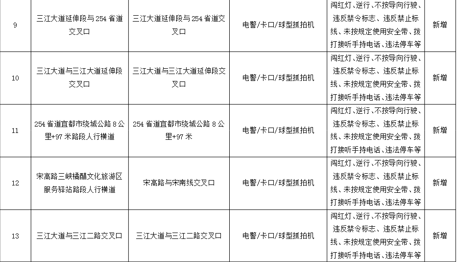 為了進(jìn)一步規(guī)范宜都市道路交通秩序,保障道路交通安全,根據(jù)《道路交通安全違法行為處理程序規(guī)定》(第157號令)第十六條的相關(guān)規(guī)定,現(xiàn)將宜都市轄區(qū)內(nèi)新增的道路交通技術(shù)監(jiān)控設(shè)備設(shè)置地點向社會公布如下: