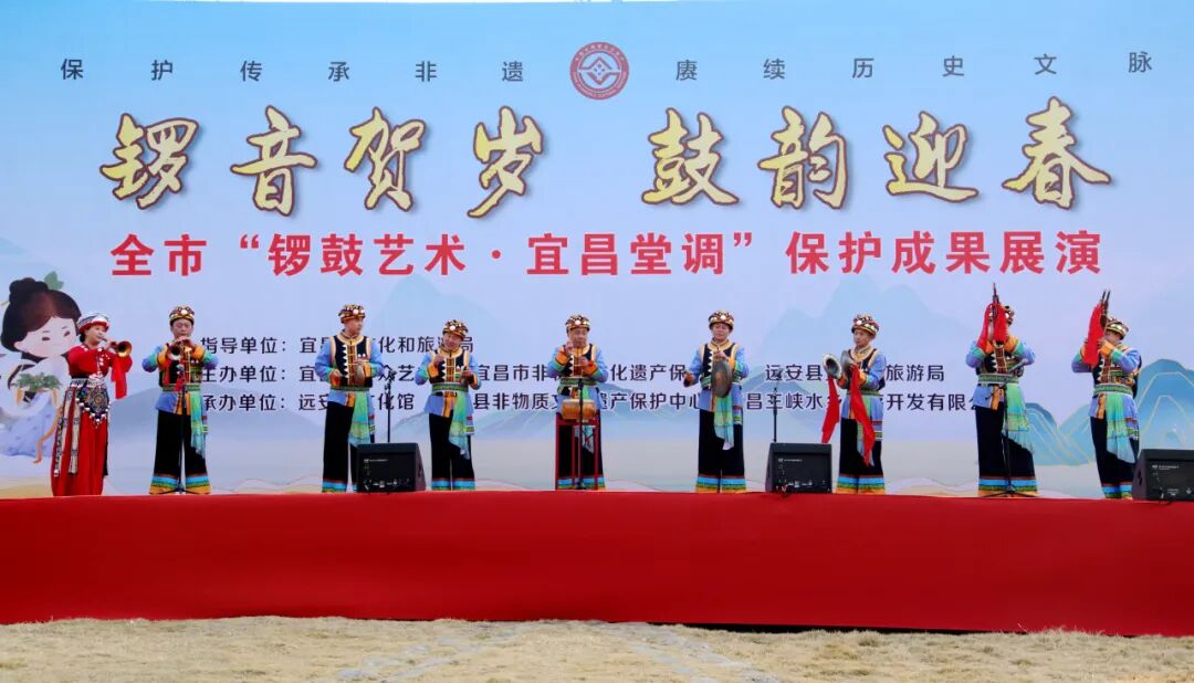 宜都融媒訊 鑼音賀歲,鼓韻迎春。1月3日,由宜昌市文化和旅游局指導,宜昌市群眾藝術館(宜昌市非物質文化遺產(chǎn)保護中心)、遠安縣文化和旅游局主辦,遠安縣文化館(遠安縣非物質文化遺產(chǎn)保護中心)、宜昌三峽水鄉(xiāng)旅游開發(fā)有限公司共同承辦的“鑼鼓藝術·宜昌堂調”保護成果展演在三峽水鄉(xiāng)風景區(qū)隆重舉行。