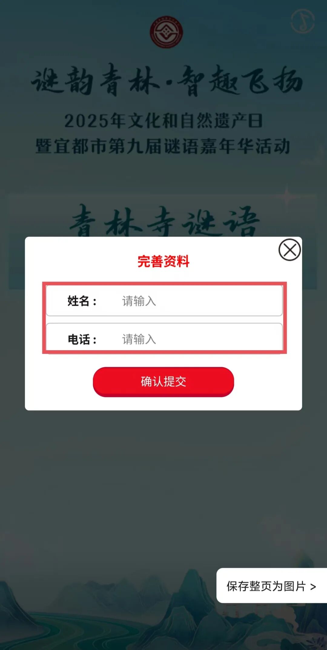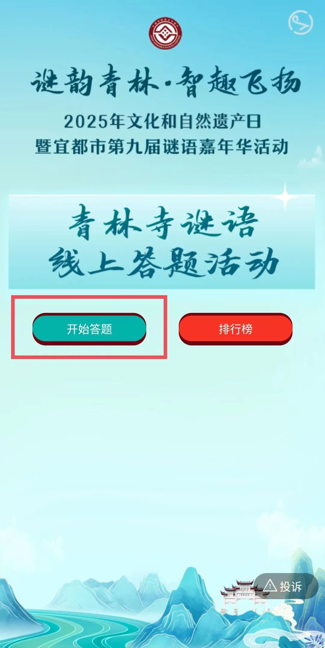 進入“青林寺謎語線上答題活動”頁面,點擊“開始答題”按鈕進入。